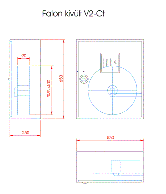 A falon kívüli (V2) tűzcsapszekrények szerelése a hátlapon található furatokkal lehetséges. A helyi adottságoknak megfelelően a súly ismeretében biztonságos felerősítést kell alkalmazni.